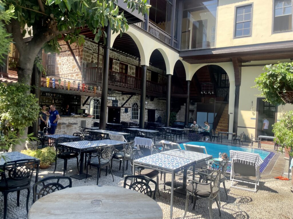 Kaleci on selleks ideaalne. Melu on, aga keegi ei kriiska; elu käib, aga mitte üle pea. Selline paras “ma võin olla turist, aga ma ei pea seda kõva häälega kuulutama” tunne. Ja siis veel see ajalooline hõng, nagu olekski korraks Türgi sultani haaremi liige:). No seda pole võimalik sõnadesse panna. Hotell on oma imelise armsa sisehooviga, mille ümber jagunevad siis toaksed, kõik oma iseloomu ja disainiga, kuid üks on ühine, ühised koosviibimise alad, eestoad ja koridorid, nii nagu Osmanite ajal.